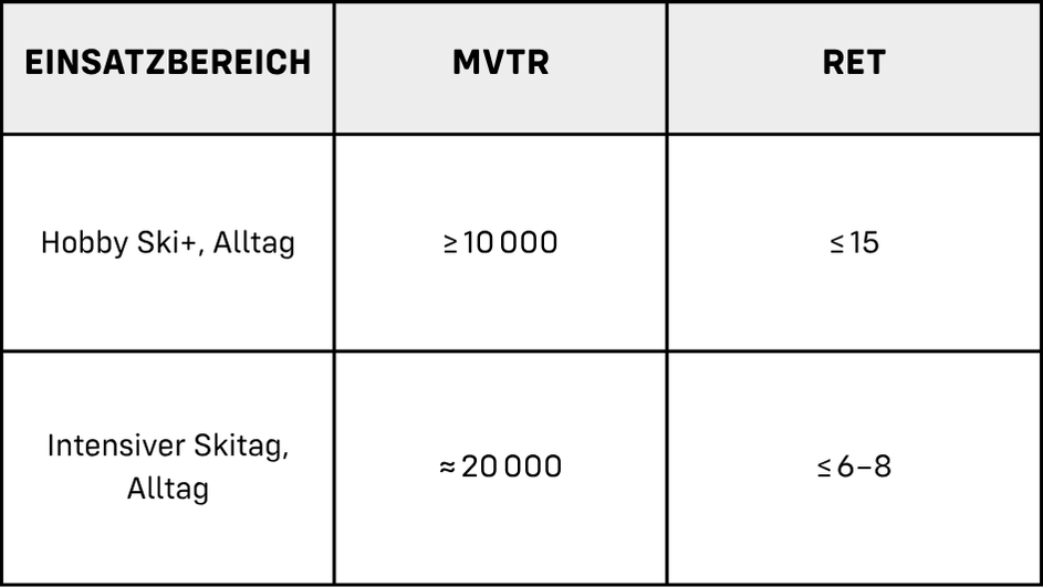 - RET (Resistance to Evaporative Heat Transfer) bewertet ergänzend den Widerstand gegen Verdunstung. Je niedriger der RET, desto besser die Atmungsaktivität.