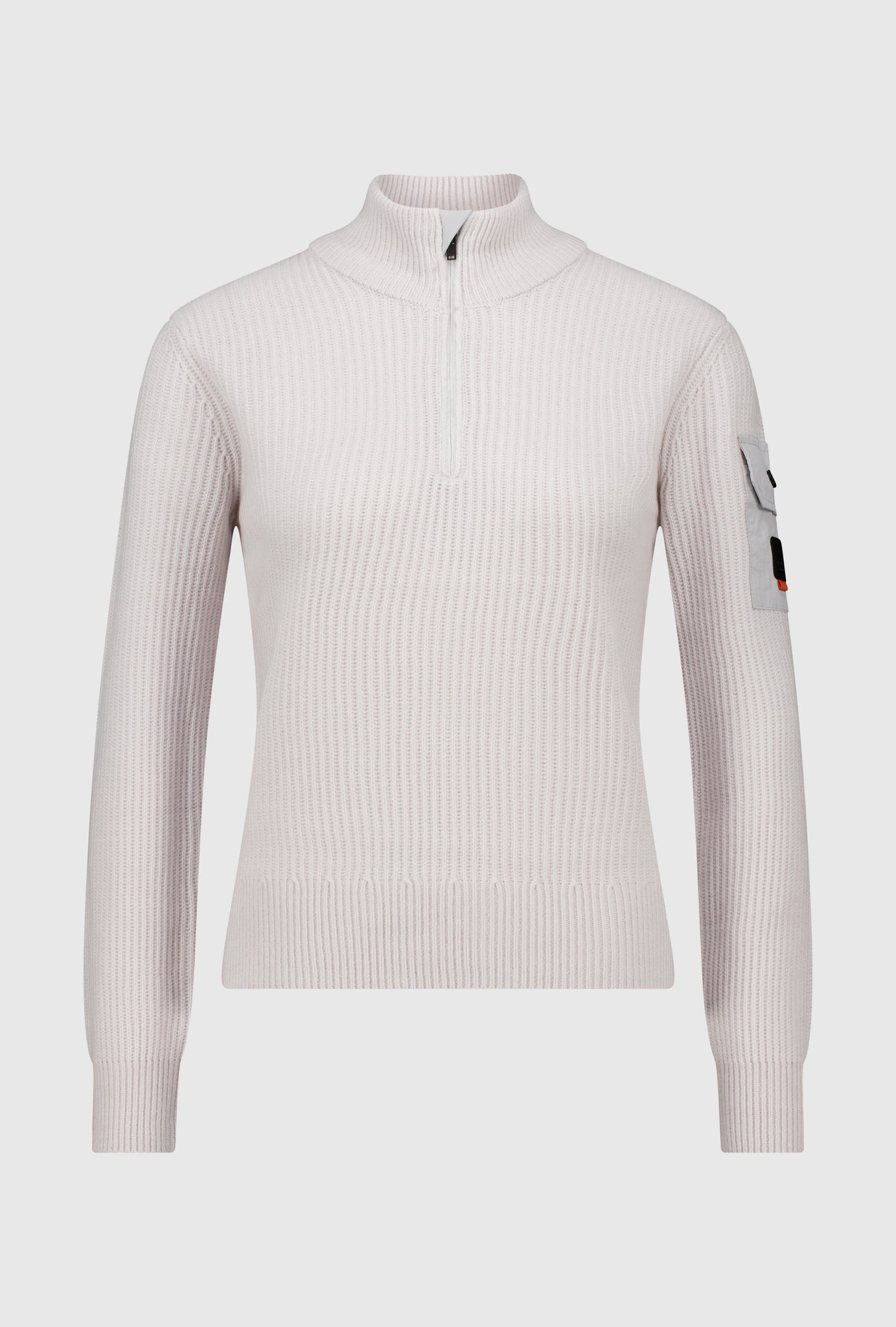 The Rigi women's merino sweater is the perfect choice for outdoor activities and everyday wear. With its short cut and stand-up collar, it offers optimal comfort and warmth. The half zip opening allows for flexible ventilation. The fine knit look and the particularly soft touch make it a favorite piece. Thanks to the natural thermoregulation of the merino wool, the sweater is ideal for different weather conditions and activity levels.